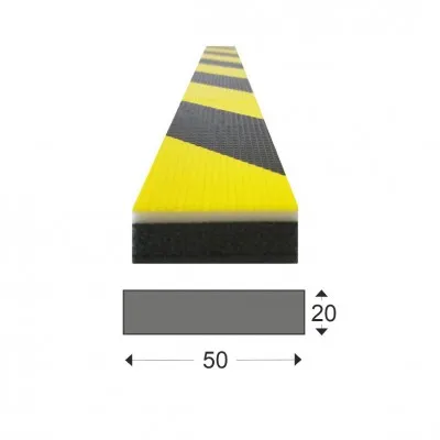 Предупредительный профиль предназначен для разметки опасных зон, обозначения препятствий, предупреждения об опасности. Упругая структура материала амортизирует удары, предотвращает возникновение травм у человека (удар головой). Применяется на вертикальных конструкциях на пути следования, низких проёмах дверей и проходов, углах оборудования и т.п. Двухслойная сигнальная плёнка предотвращает износ сигнальной маркировки. Клеевой слой обеспечивает надёжное соединение с поверхностью (без предварительной подготовки).