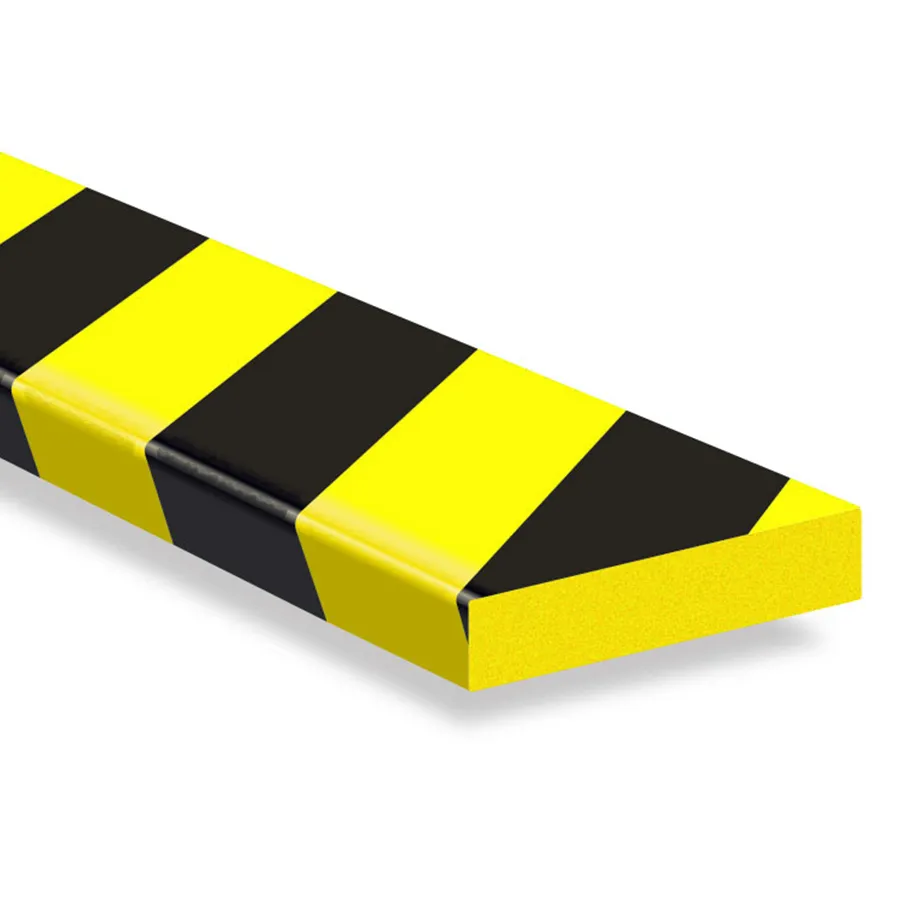 Защитный профиль предназначен для разметки опасных зон, обозначения препятствий, предупреждения об опасности. Упругая структура материала амортизирует удары, предотвращает возникновение травм у человека (удар головой). Применяется на вертикальных конструкциях на пути следования, низких проёмах дверей и проходов, углах оборудования и т.п. Двухслойная сигнальная плёнка предотвращает износ сигнальной маркировки. Клеевой слой обеспечивает надёжное соединение с поверхностью (без предварительной подготовки).