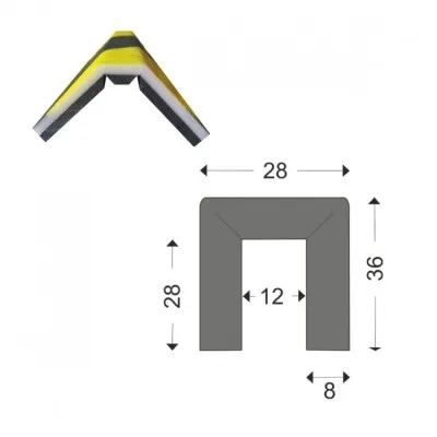 Предупредительный профиль предназначен для разметки опасных зон, обозначения препятствий, предупреждения об опасности. Упругая структура материала амортизирует удары, предотвращает возникновение травм у человека (удар головой). Применяется на вертикальных конструкциях на пути следования, низких проёмах дверей и проходов, углах оборудования и т.п. Двухслойная сигнальная плёнка предотвращает износ сигнальной маркировки. Клеевой слой обеспечивает надёжное соединение с поверхностью (без предварительной подготовки).