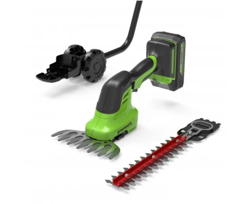 Садовые ножницы-кусторез работают от аккумулятора 24 Вольта и являются одним из 20-ти устройств системы GreenWorks G-24V, работающей от единой аккумуляторной батареи.
