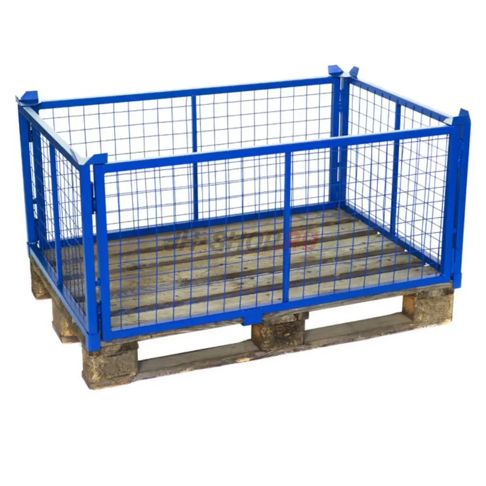 Сетчатое ограждение для поддона. Сетчатое ограждение для поддона может быть установлено на деревянный, пластиковый, а также металлический поддон с металлическим или фанерным настилом. Установка ограждения на поддон происходит по средством двух настраиваемых кронштейнов. Вы можете устанавливать ОПС-500 вертикально друг на друга, но не более чем 4, для этого в четырех, верхних углах предусмотрены площадки с ограничением.
