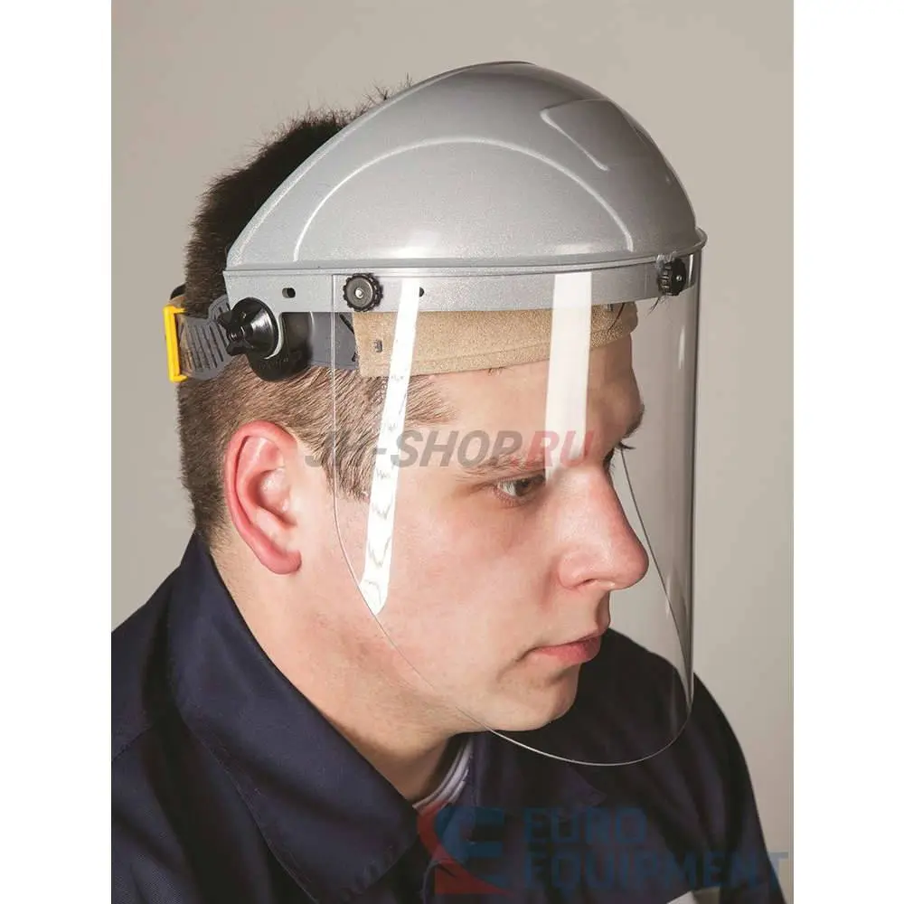 Термостойкий щиток повышенной ударопрочности. Козырек увеличенного размера из непрогораемого термостойкого материала для защиты лба от температурного и механического воздействия. Наголовное крепление с мягким налобным обтюратором из натуральной кожи регулируется: по размеру головы маховичком (РАПИД), по высоте ношения, по углу наклона экрана.