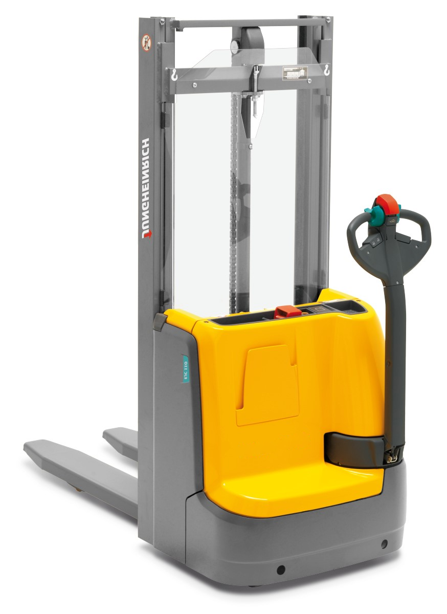 Например: Штабелер электрический самоходный Jungheinrich EJC M10 h3, 3300 мм (имеет высоту от пола до верхней поверхности вил 3300мм).