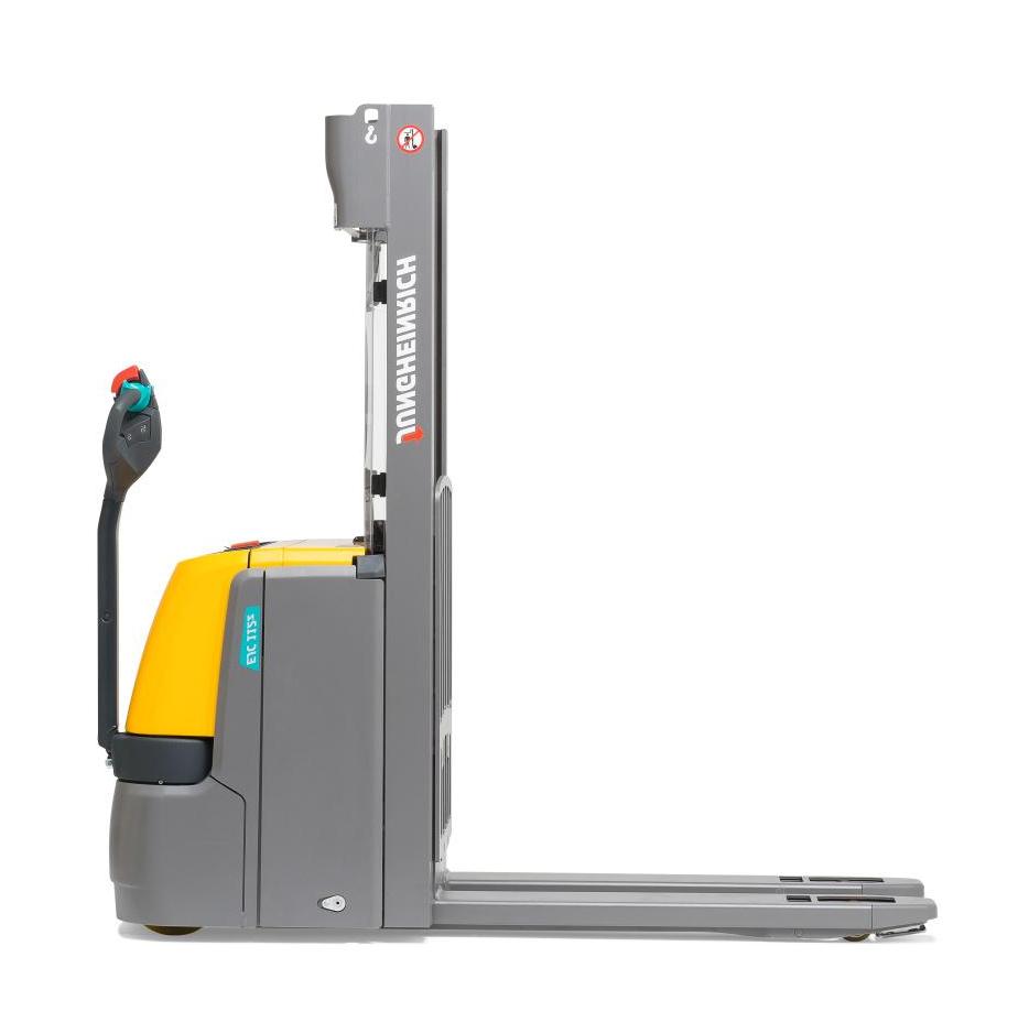 Например: Штабелер электрический самоходный Jungheinrich EJC M10 h3, 3300 мм (имеет высоту от пола до верхней поверхности вил 3300мм).