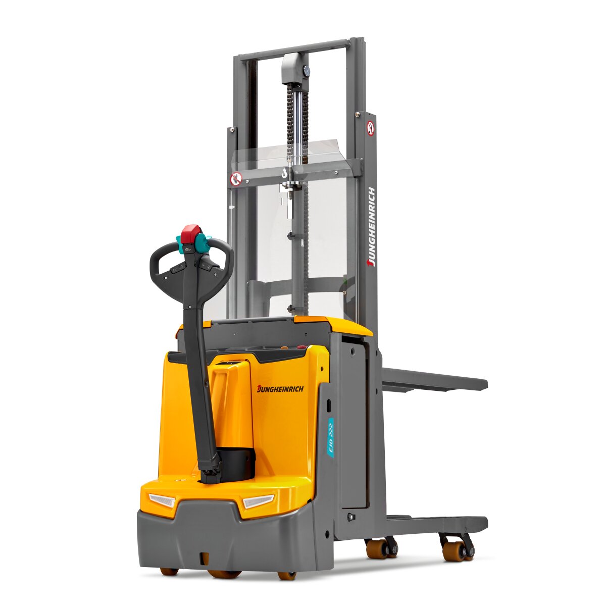 Гибкий и эффективный электрический штабелёр EJD 222 разработан для обработки специальных грузов. Опорные лапы выдвинуты в сторону, благодаря чему вилы могут быть опущены на землю. Кроме того, наши вспомогательные системы OperationCONTROL предупреждают, превышена ли остаточная грузоподъемность, а предварительный выбор высоты подъема в системе positionCONTROL, обеспечивает безопасную и эффективную обработку грузов.