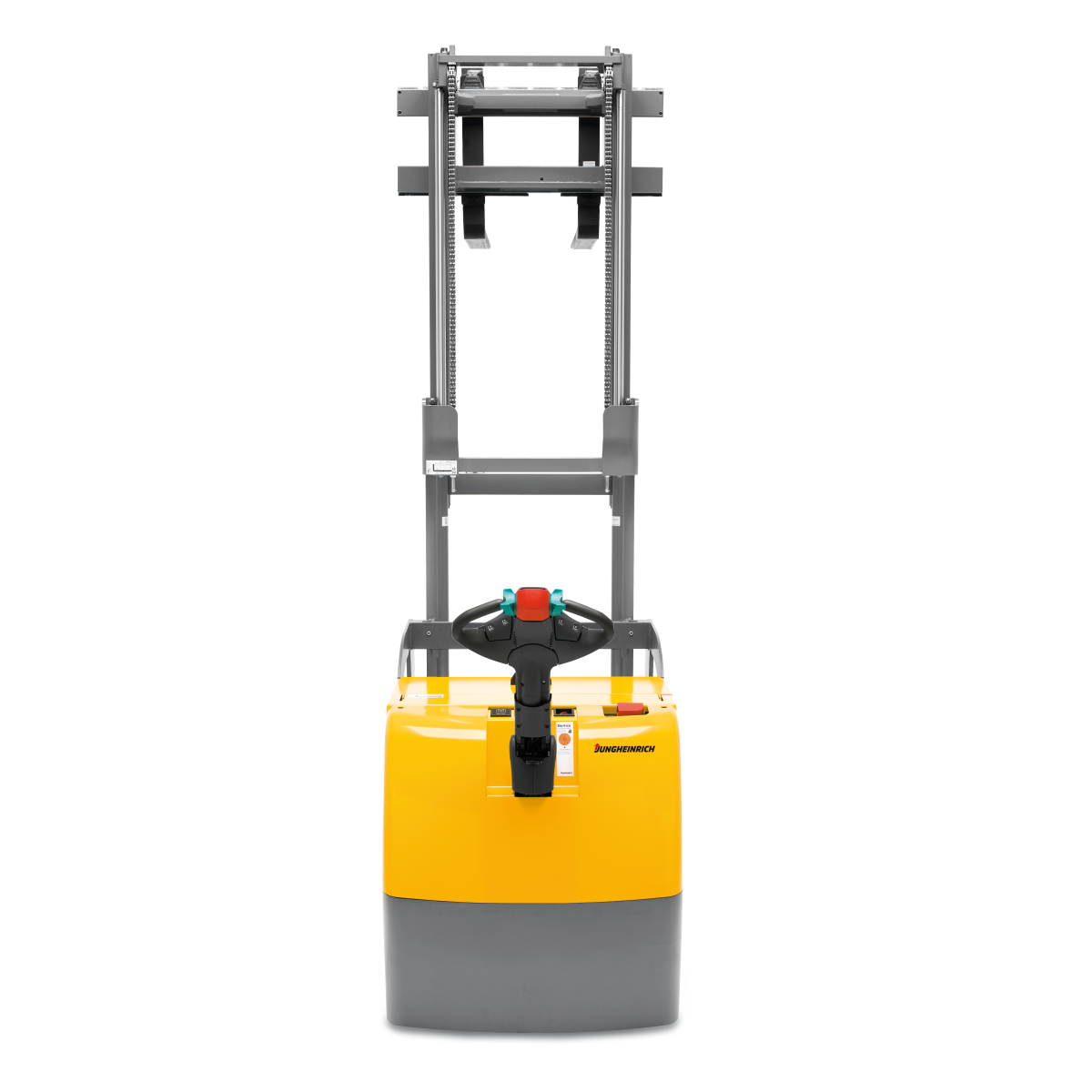 Например: Штабелер электрический самоходный Jungheinrich EJC M10 h3, 3300 мм (имеет высоту от пола до верхней поверхности вил 3300мм).
