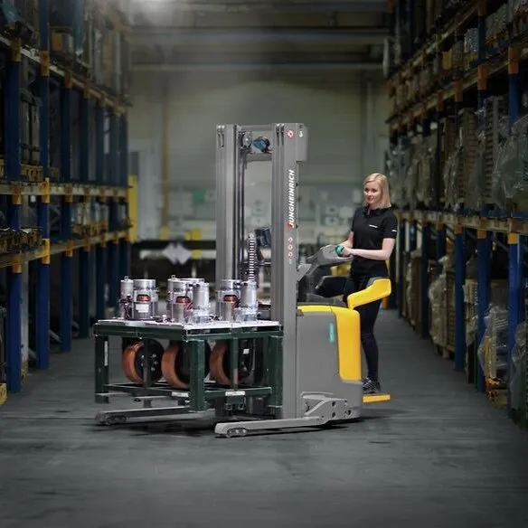 Да, штабелеры Jungheinrich Серия B подойдут для обработки паллет поперек (по короткой стороне), а также для работы с нестандартными грузами. Вилы можно передвигать по ширине, как на погрузчике.