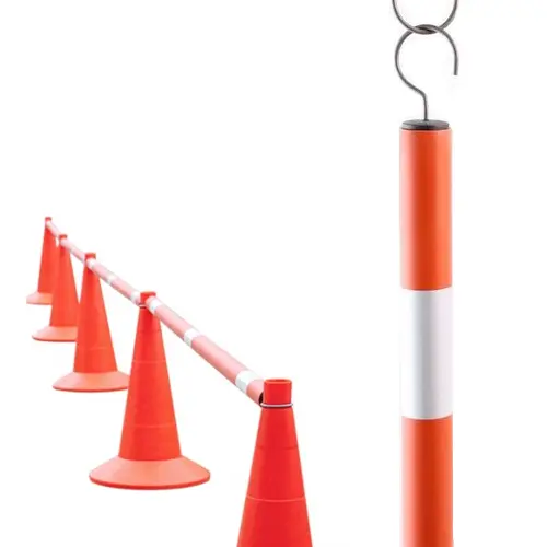 Штанга для конуса представляет собой трубу из оранжевого полиэтилена высокой плотности диаметром 40 мм и высотой 1500 мм. На штангу наносятся белые светоотражающие полосы для улучшения видимости в тёмное время суток. В комплекте идут крючки для крепления на конусах в количестве 20 штук.