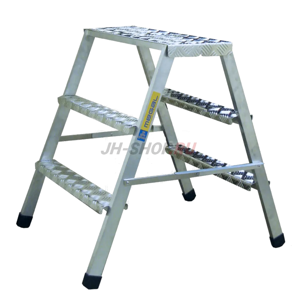 - Широкие ступени глубиной 85 мм из рифленого алюминиевого листа
