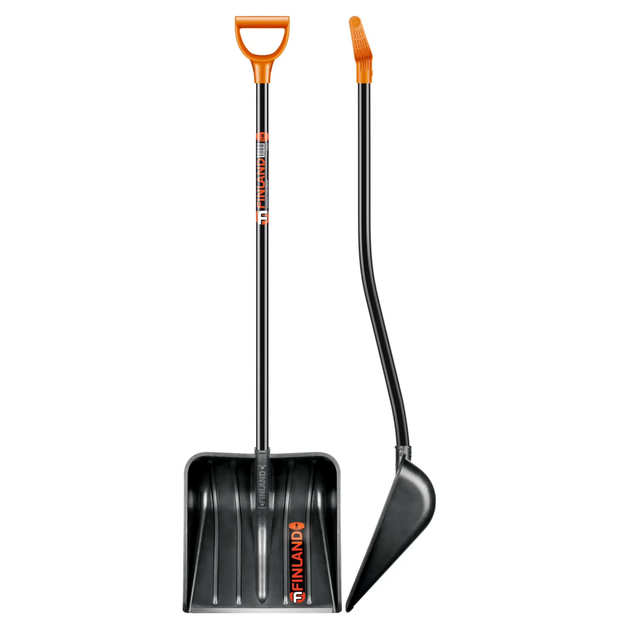 Лопата снеговая FINLAND — удобный инструмент для уборки снега с прочной изогнутой рукояткой. Черенок не скользит в руке благодаря оплётке. Для более удобной работы на черенке предусмотрена эргономичная пластиковая рукоятка. Качественные материалы устойчивы к высоким нагрузкам и низким температурам. На полотно из пластика не налипает снег. Кромка ковша усилена алюминиевой окантовкой для лучшего захвата снега. Алюминий по внешней рабочей кромке повышает прочность ковша и защищает его от повреждения. Гарантия на пластик 5 лет.