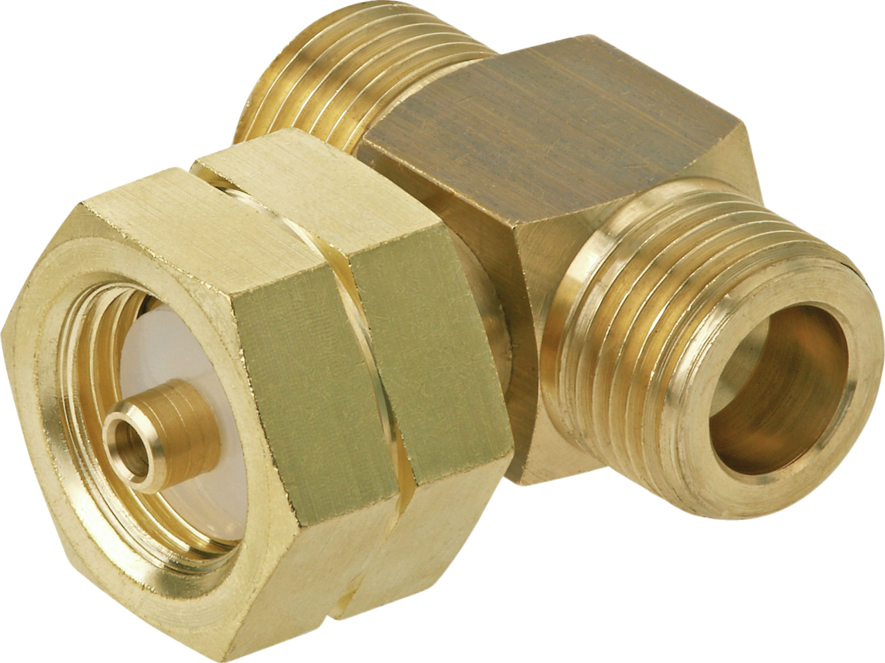 Соединитель-тройник GOK для подключения газовых баллонов без воротника. Выполнен из латуни. Используется в газовых системах с соединением Kombi G.5. Производство — Германия.