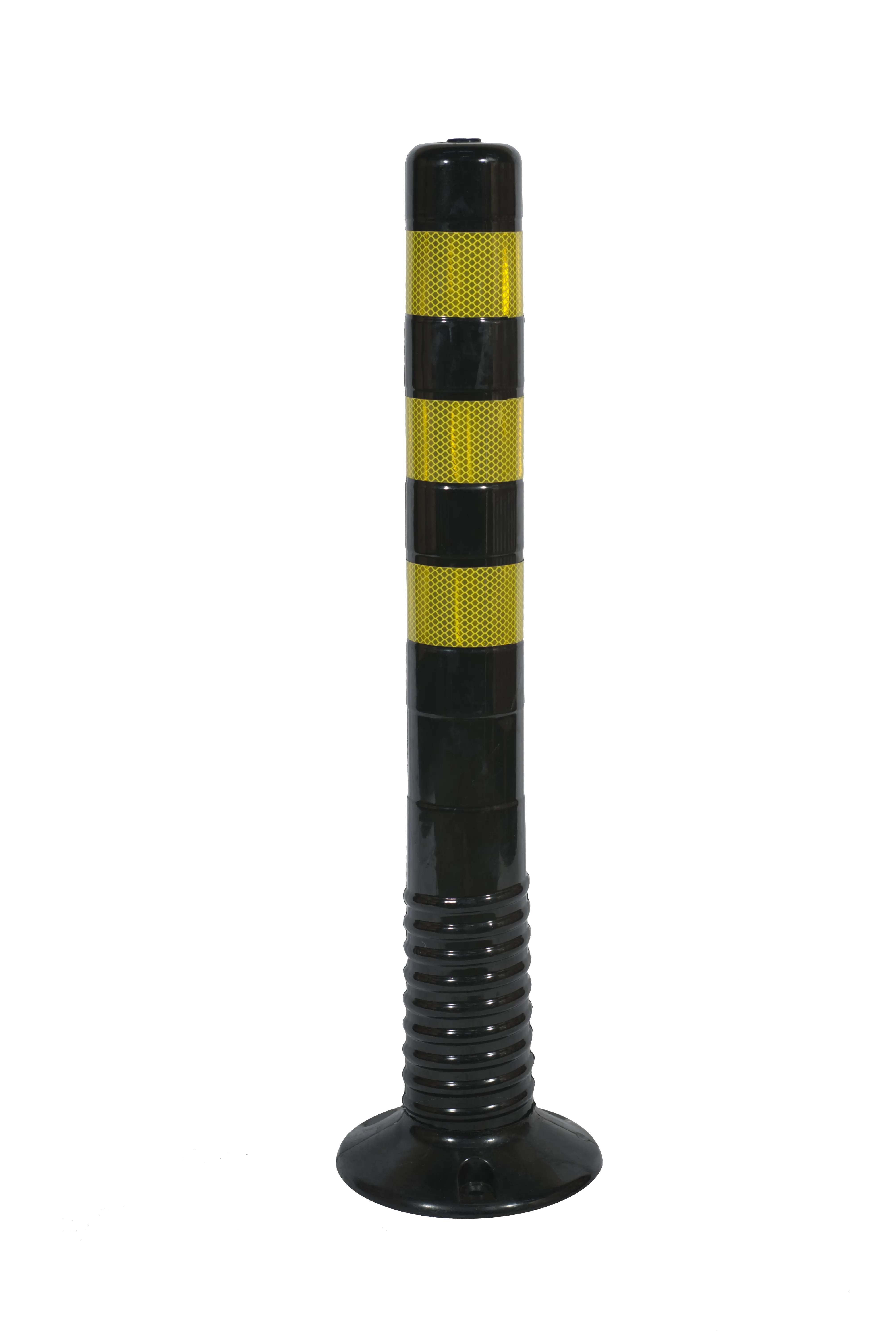 Гибкий дорожный столбик черного цвета изготавливается из эластичных полимерных материалов, которые при наезде транспортных средств обеспечивают оперативный возврат изделия в исходное положение. На корпусе столбика нанесена горизонтальная разметка из световозвращающей желтой пленки, полосы нанесены по три штуки в горизонтальном порядке. Столбик крепится к дорожному покрытию с помощью анкерных болтов.