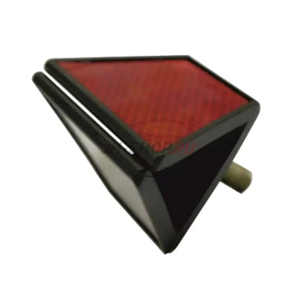 Корпус катафота изготовлен из резины. В корпус вмонтирован болт крепления. На поверхность нанесены светоотражатели красного и белого цвета.