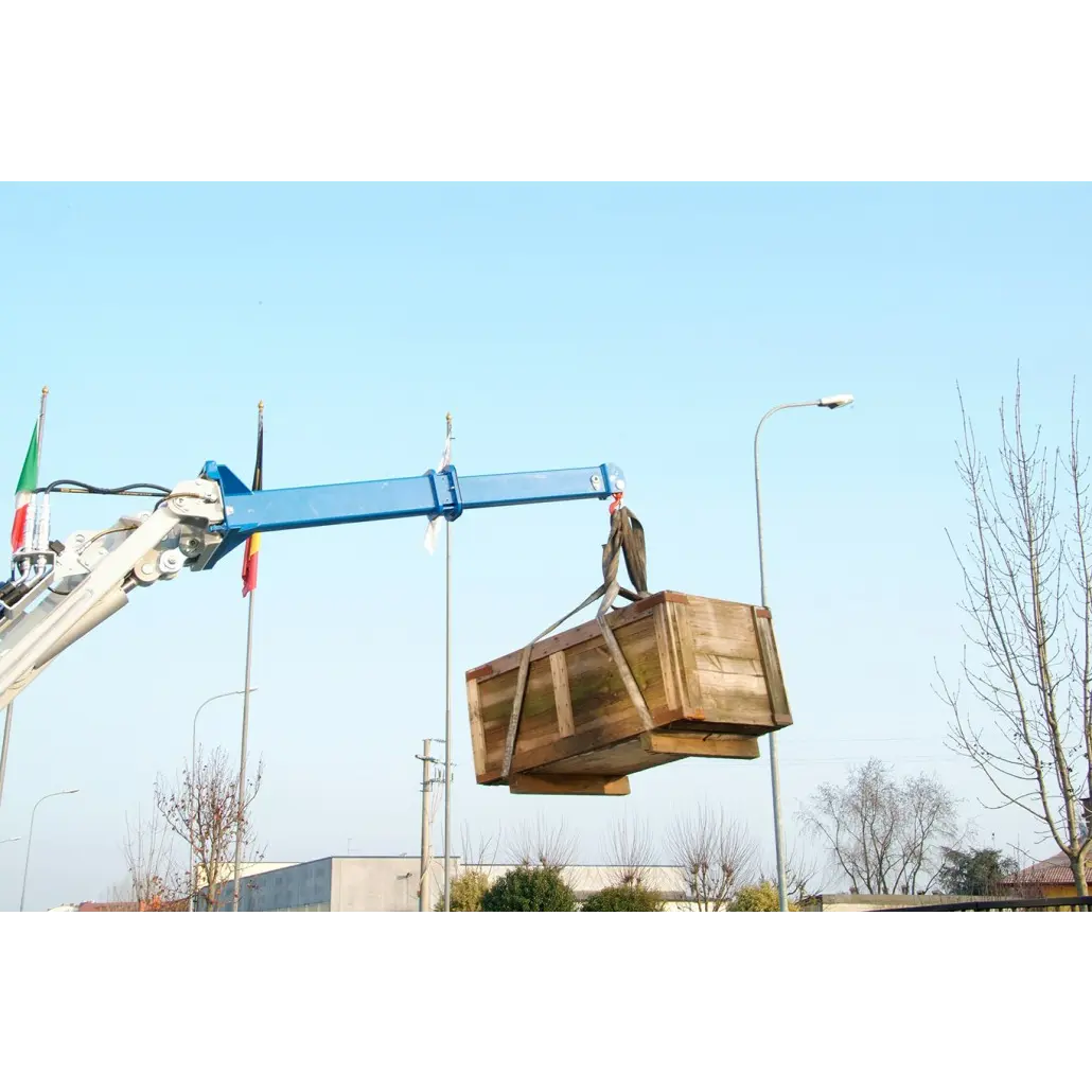 Цельный подъемный кран оснащен двумя точками соединения, одна на конце стрелы, а другая на 500 мм ниже. Телескопический подъемный кран позволяет удерживать груз рядом с машиной, а затем выдвигать вдаль для погрузки. Бесступенчато выдвигающаяся и убирающаяся стрела позволяет поднимать груз в места, которые в противном случае было бы очень трудно достичь. Компактная конструкция с телескопическим цилиндром внутри стрелы и прочными износостойкими накладками на внешней стреле делает работу безопасной и легкой. Максимальная грузоподъемность зависит от машины, на которой она установлена.
