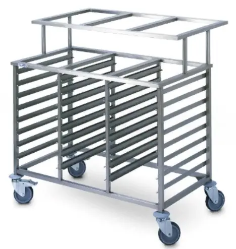 Дополнительные контейнеры могут быть прикреплены к верхней раме из нержавеющей стали. Сварная горизонтальная рама, смещенная на заднюю часть, составляет 7,6 '' (193 мм) по отношению к основанию и предназначена для крепления дополнительных контейнеров. 4 дисковых бампера на базовой стойке служат в качестве бамперов и защищают тележку от всех повреждений.