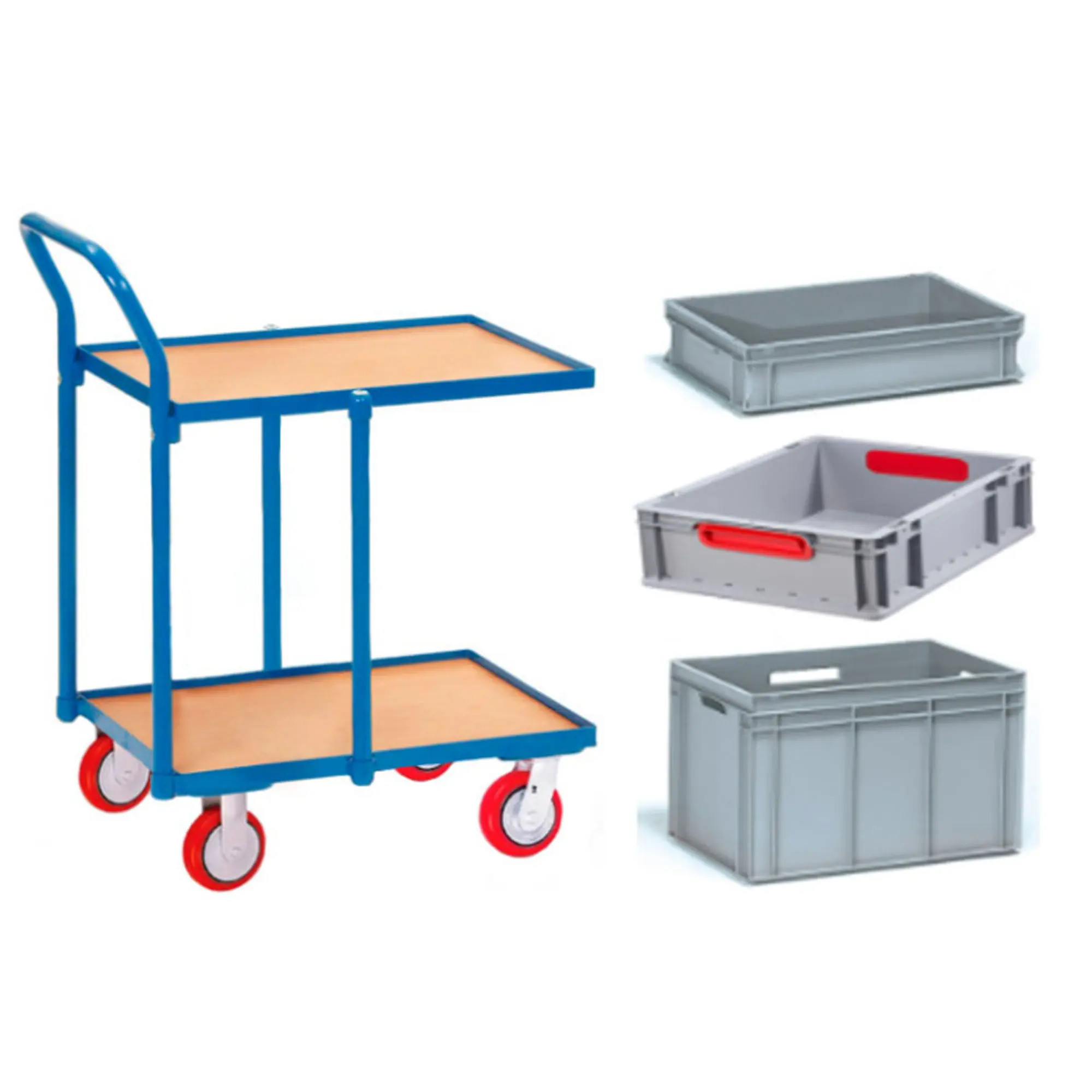 Тележка легка и проста в применении. Идеально подходит для перевозки евробоксов, ящиков, коробов или лотков на складах, в торговых залах, на производстве. Предназначена для регулярного, интенсивного использования.