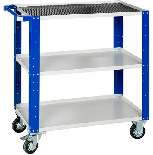 Инструментальная тележка предназначена для хранения и оперативного перемещения инструмента по производственным и иным площадкам. Изготавливается тележка для инструментов из высокопрочной стали и используется в основном как мобильный передвижной ящик для инвентаря. Именно с целью легкого перемещения тележка оснащена четырьмя резиновыми колесами (100 мм), причем для надежной фиксации тележки на месте одно колесо снабжено стояночным тормозом. Также тележка для инструментов на колесах используется как подставной элемент к рабочим поверхностям.Тележки выпускаются как открытого, так и закрытого типа.