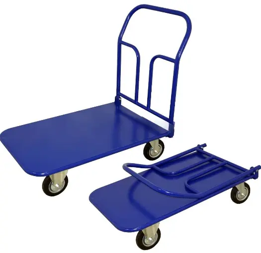 Настил - лист металлический, установлен на металлическом каркасе изготовленном из трубы круглого сечения 30 мм. Тележка поставляется с установленной, сложенной ручкой. Грузоподъёмность тележки рассчитана до 550 кг распределенной нагрузки, в зависимости от выбранного диаметра платформенных, колесных опор. Тележка имеет универсальную площадку для установки колесных опор, как европейских, так и азиатских производителей.