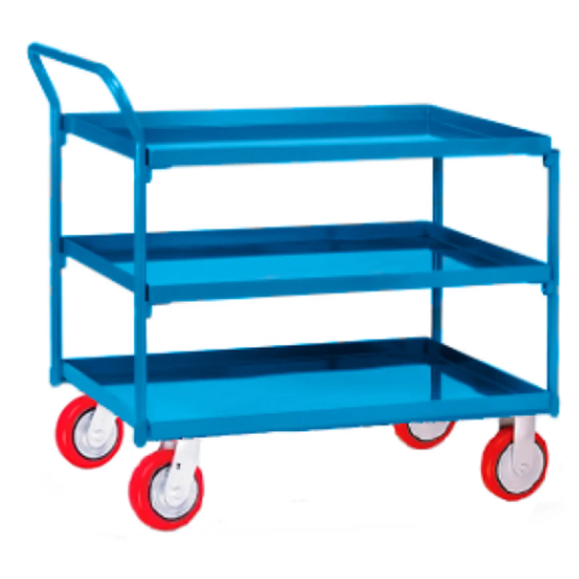 Тележка легка и проста в применении. Идеально подходит для перевозки евробоксов, ящиков, коробов или лотков на складах, в торговых залах, на производстве. Предназначена для регулярного, интенсивного использования.