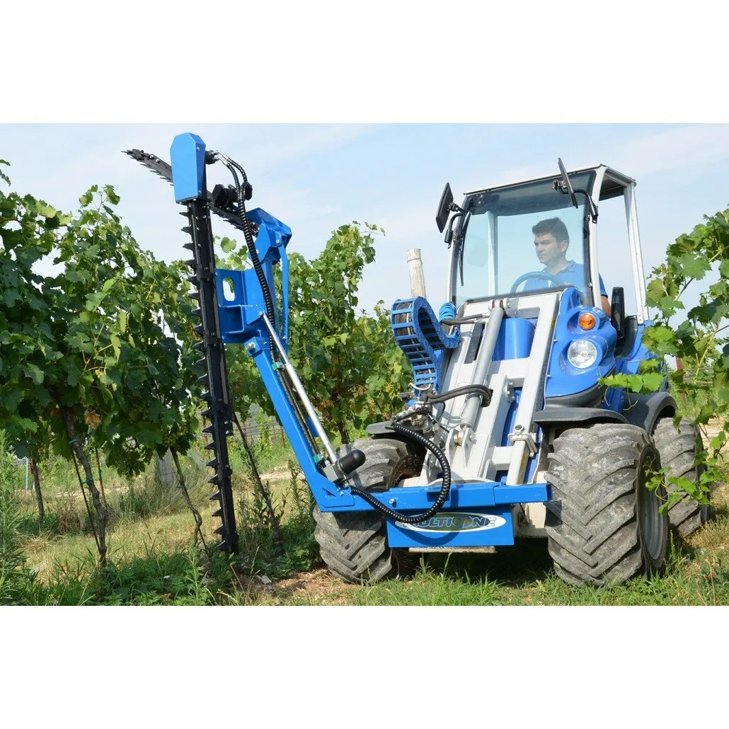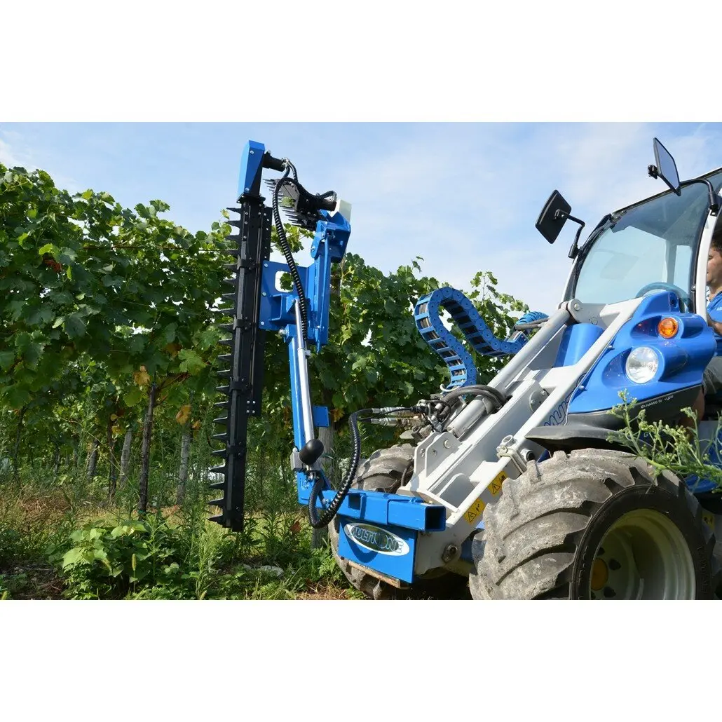 Гидравлический триммер с двумя лезвиями позволяет одновременно обрезать верхнюю и боковые стороны рядов виноградной лозы и крупных растений. Каждая рама и узел триммера регулируются независимо, а стрела MultiOne обеспечивает дополнительную гибкость и контроль. Наклон горизонтальной режущей штанги можно регулировать вручную, также одновременно регулировать наклон обеих режущих планок посредством электрического привода можно прямо с водительского места. Триммер оснащен опорными ножками для позиционирования во время хранения.