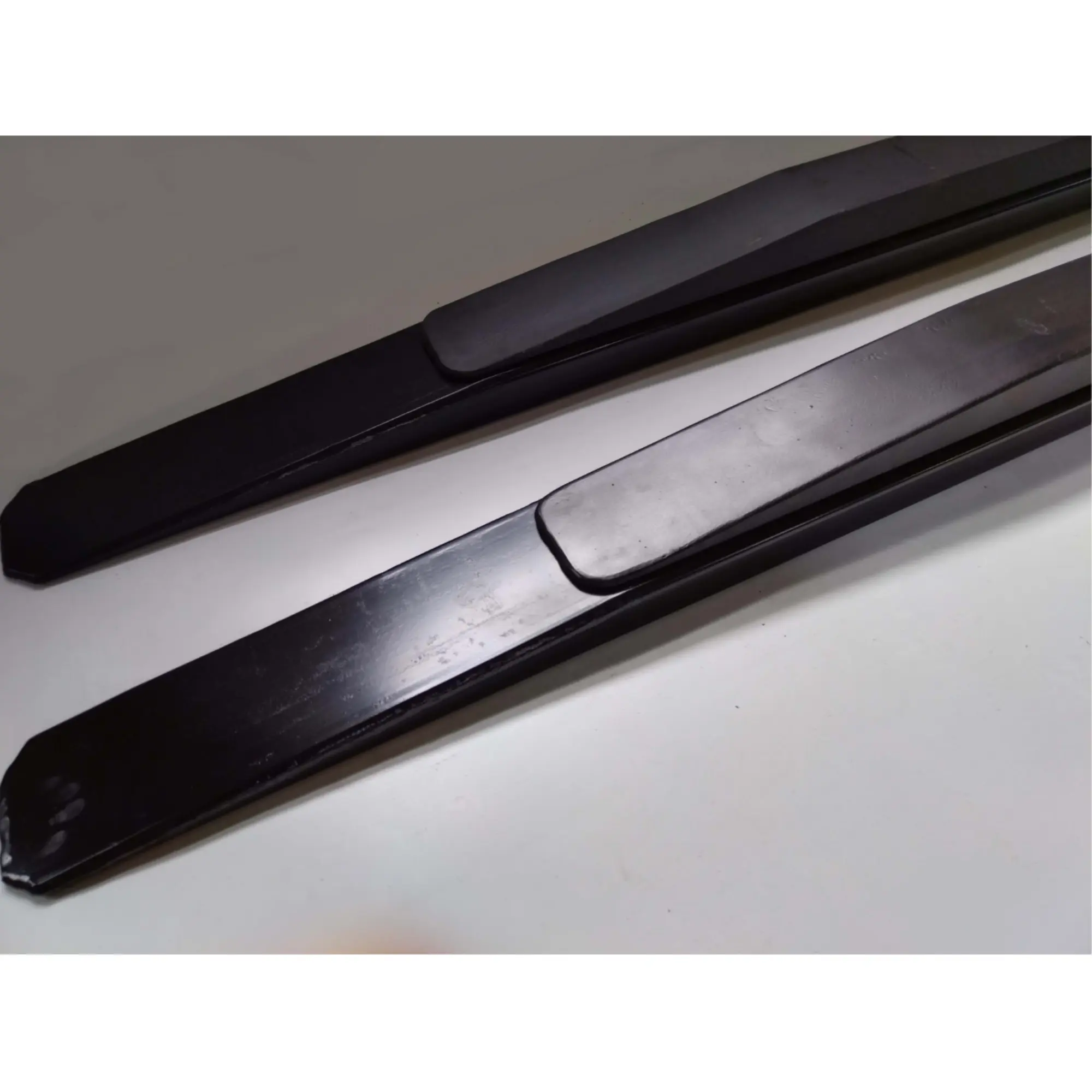 Главное достоинство такого устройства на технику — простота его установки и возможность транспортировки любого по длине груза без его повреждения, что, заметим, часто наблюдается, если применяются короткие вилы при перемещении длинных паллетов. Внимание! Удлинить вилы погрузчика при помощи удлинителя можно не более 40-60% от стандартных вил.