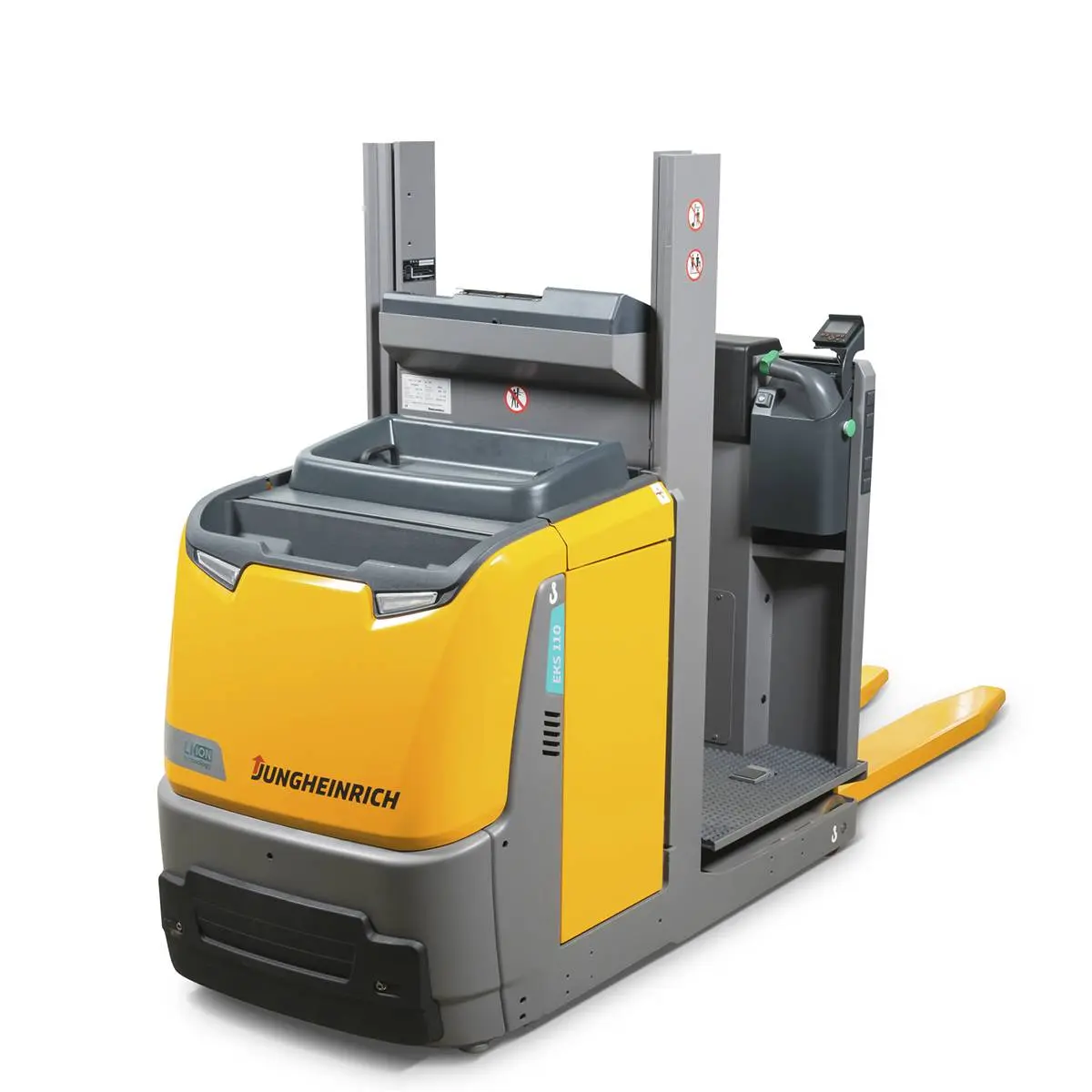 Вертикальный подборщик заказов Jungheinrich EKS 110 - идеальная машина для подбора заказов на высоте от первого до третьего уровня стеллажей. Платформа оператора и грузовая часть одновременно поднимаются на высоту до 3000 мм. Работа по комплектованию заказов возможна на высоте захвата до 4600 мм. Консольная конструкция позволят осуществить поперечный и продольный захват с пола различных средств для транспортировки груза.
