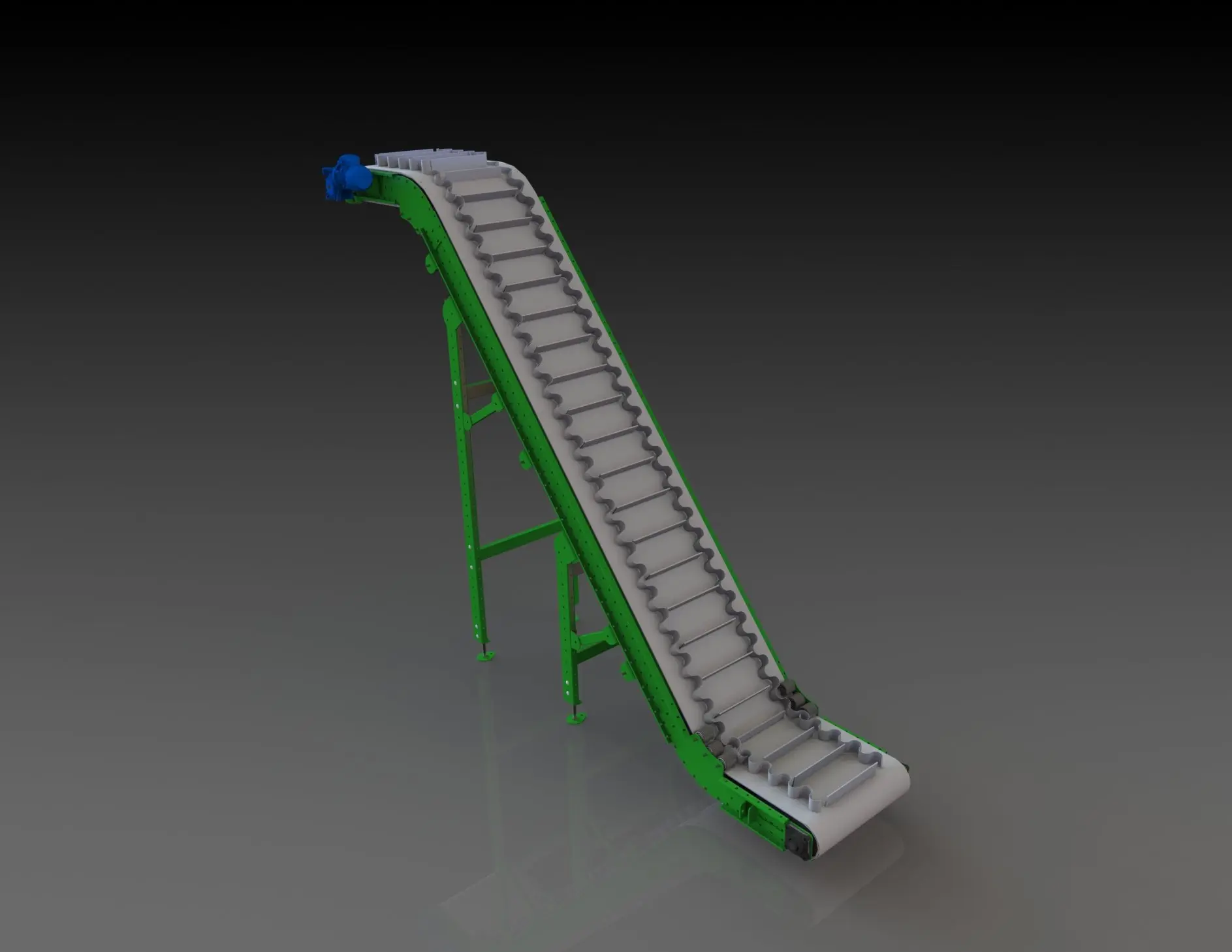 Z-образный транспортер снабжен трассой, которая может наклоняться под острым углом от 20°. Конвейеры в виде буквы Z используются в случае, если нужно сократить площадь производства без ущерба протяженности линии, и где идет транспортировка мелкогабаритных товаров.
