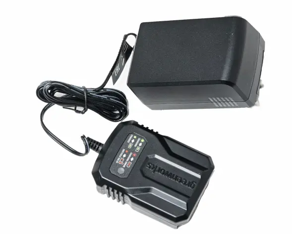 Зарядное устройство-слайдер Greenworks 40V (2 A) заряжает 2 Ач и 4 Ач аккумуляторы серии Greenworks 40V.