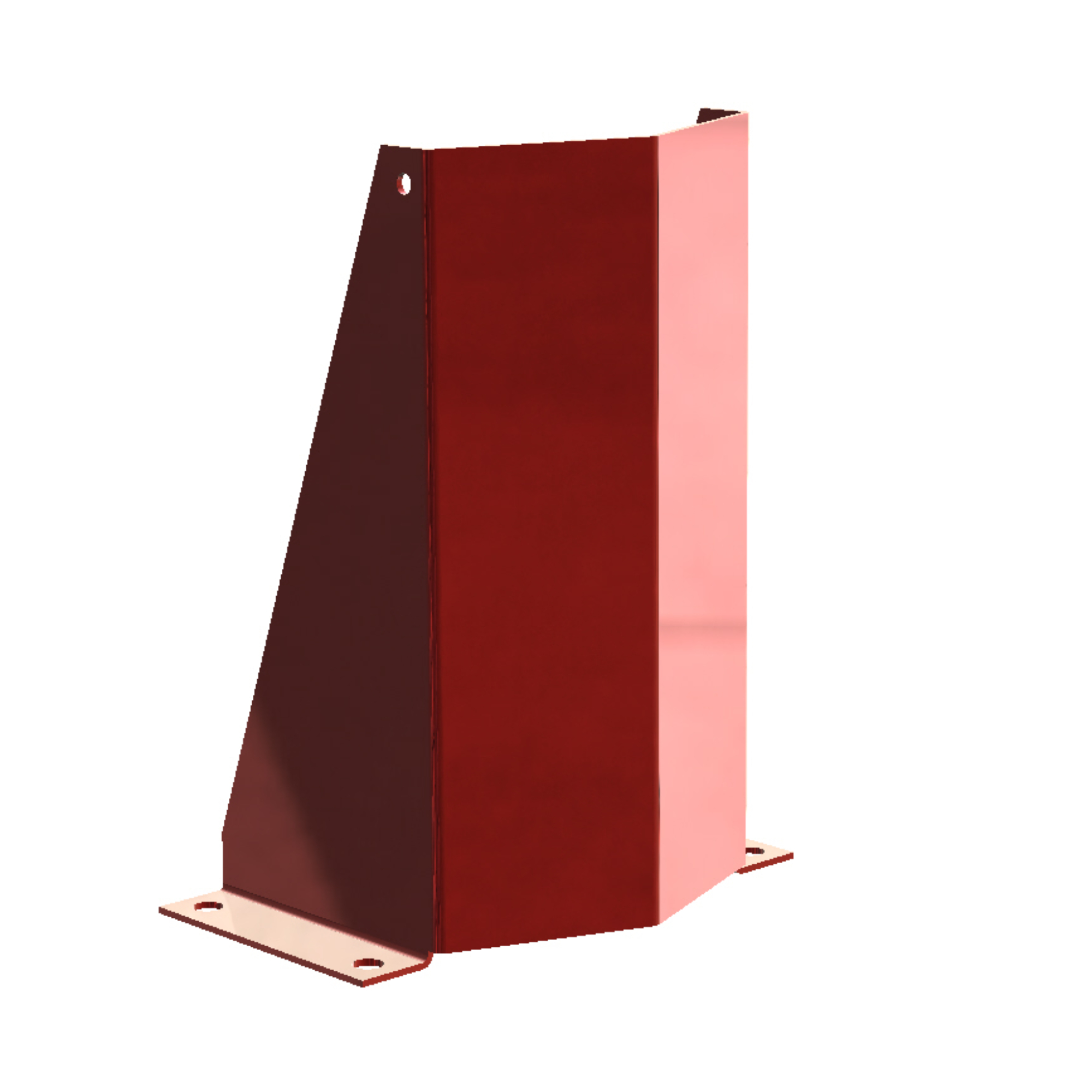Является элементом безопасности фронтального стеллажа. Защита устанавливается перед стойкой стеллажа и служит в основном для защиты от наезда погрузочной техники на стойки рам паллетных стеллажей.